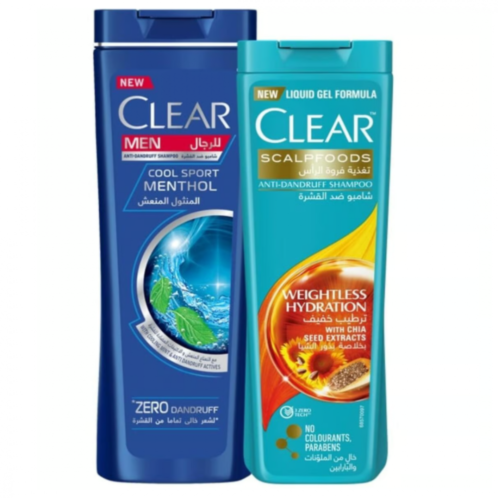كلير شامبو بالمنثول للرجال 400مل + كلير شاميو تغذية لفروة الرأس بمستخلص بذور الشيا 350مل